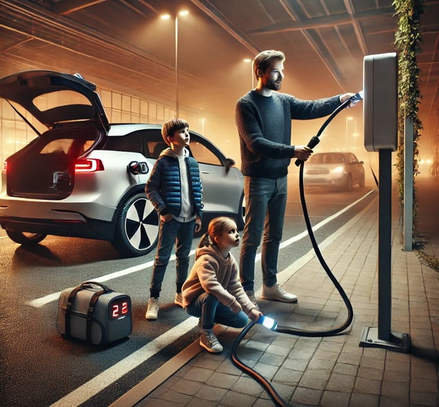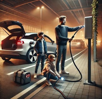 Y en ese momento, algo cambió. Leo y Lucía dejaron de ser simples espectadores para convertirse en mis pequeños asistentes. Mientras uno desenrollaba el cable, el otro sostenía la linterna del móvil para iluminar el enchufe. Nos reímos, tropezamos, y al final, conseguimos lo que parecía imposible: ¡cargar el coche! Sí, vale, el proceso fue un poco chapucero, pero funcionó, y al final, no es eso lo que importa?