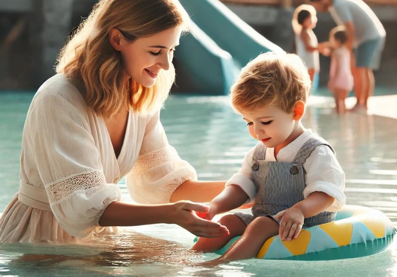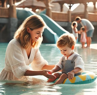 Prevenir rabietas: Madre le da espacio a su hijo en el parque acuático