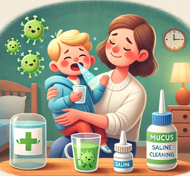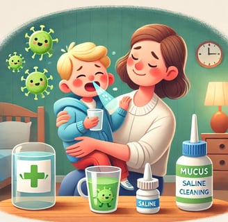 Lavados nasales regulares: Realiza lavados nasales antes de las comidas y antes de dormir. Usa suero fisiológico o agua salina para limpiar las fosas nasales, lo que ayudará a despejar la congestión y facilitar la respiración. Aunque a muchos niños no les gusta, este hábito reduce significativamente los síntomas.
